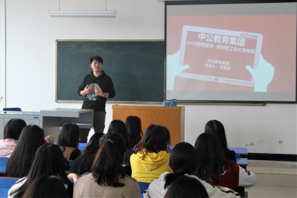 宣讲会上,中公教育集团宣讲人李克新简要介绍了中公教育集团的发展历程和前景,并对招聘岗位和薪资福利做了详细的讲解。中公教育集团的招聘岗位分为师资岗和综合岗两部分,师资岗主要招聘各类培训讲师,综合岗主要招聘市场运营、项目运营、网络运营等岗位。随后,中公教育集团宣讲人李克新结合自身经历与同学们分享了工作的经验和心得,并激励同学们要树立就业信心,制定好就业目标与规划,抓住机遇,实现人生价值。同学们在台下认真聆听,不少人展现出了竞聘意向。