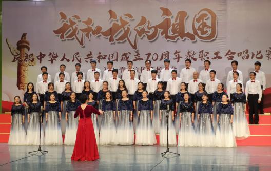 为弘扬爱国主义精神,歌颂祖国70年来的辉煌成就,激发广大教职工的爱国情感和奋斗热情。2019年9月27日 ,由许昌学院党政办公室、党委宣传部和团委联合主办的以“歌颂党,歌唱祖国,歌唱美好新时代”为主题的庆祝中华人民共和国成立70周年教职工合唱比赛在音乐厅举行。我院全体教职工参加了此次合唱比赛。