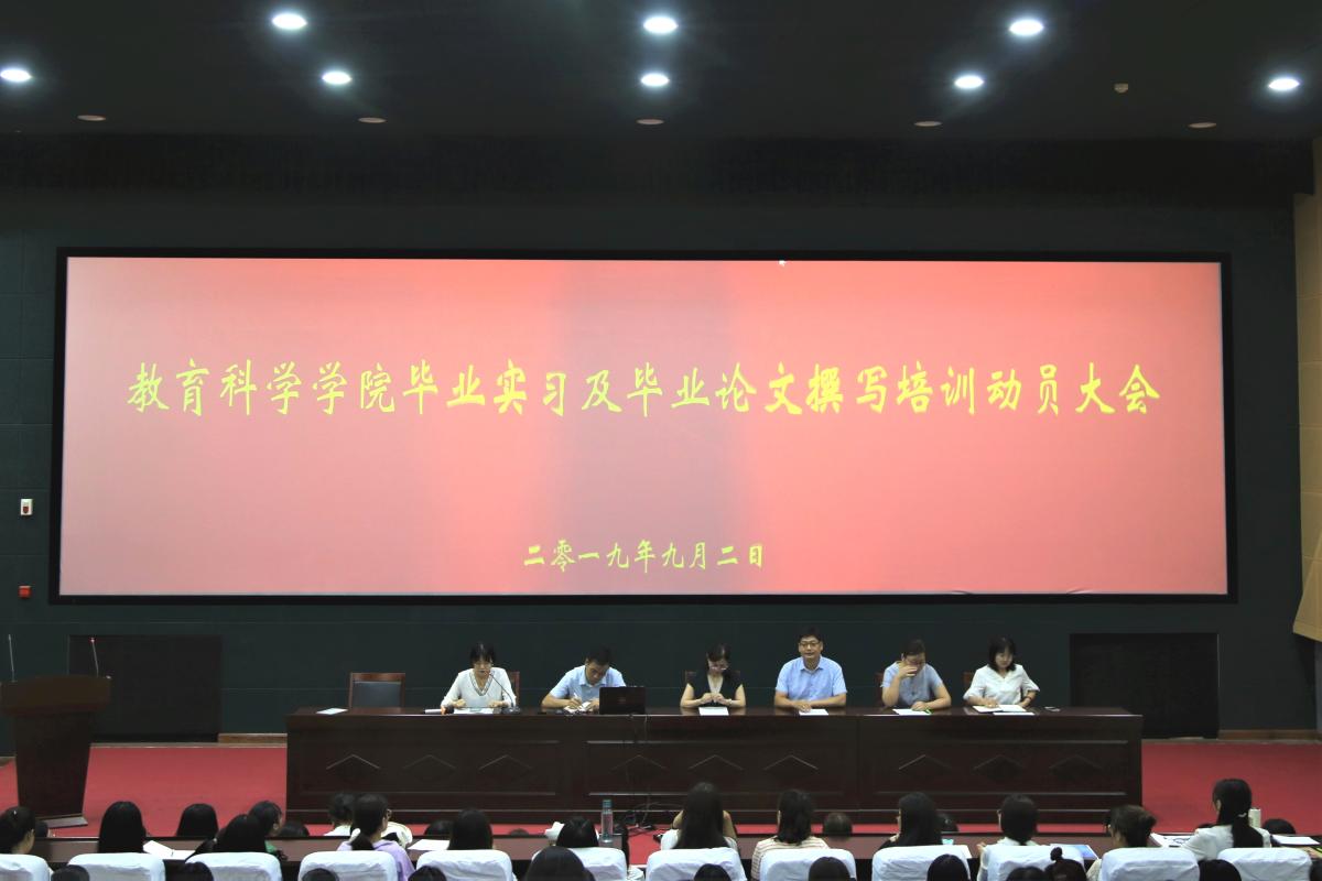 2019年9月2日上午9点,教育科学学院在创新创业楼学术报告厅召开了2020届毕业生实习及毕业论文撰写培训动员大会。此次大会由教育科学学院2016级辅导员刘馨婷主持,教育科学学院党总支副书记李晓鹏、教学秘书陈向丽、2018级专升本辅导员方晓乐以及2020届全体毕业生共同参加。