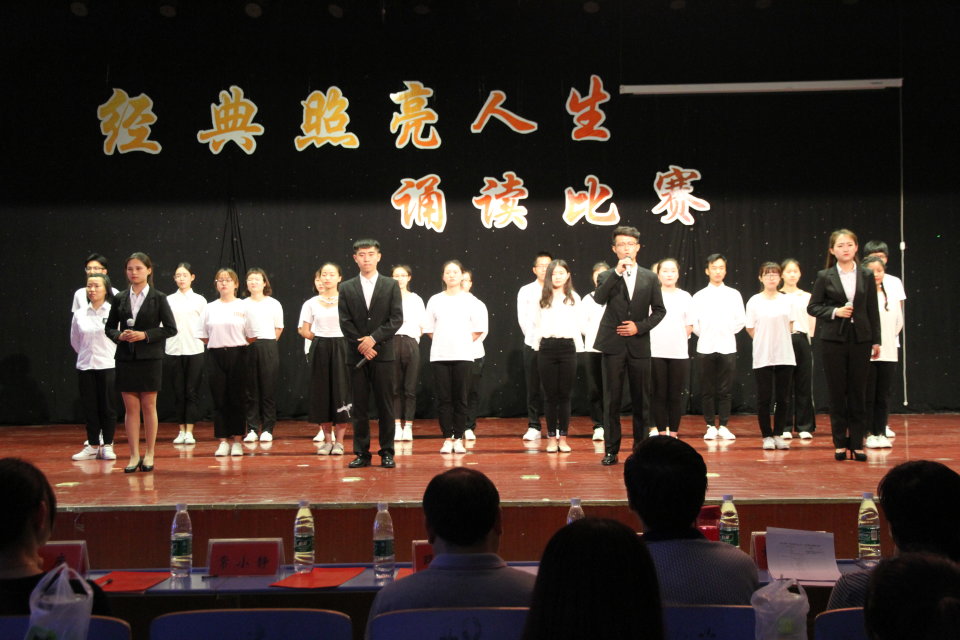 2018年5月18日,由我校党委宣传部、学生工作部、工会、团委、教务处、图书馆联合主办,教育科学学院承办的第十四届许昌学院“经典照亮人生”诵读比赛学生组决赛在大学生活动中心举行。校工会副主席路运洪、校团委书记谢依楠、党委宣传部副部长王彦、图书馆党总支书记刘宝玉以及教育科学学院党总支书记常小静,副书记李晓鹏莅临了比赛现场,来自全校的300余名师生共同观看了比赛。