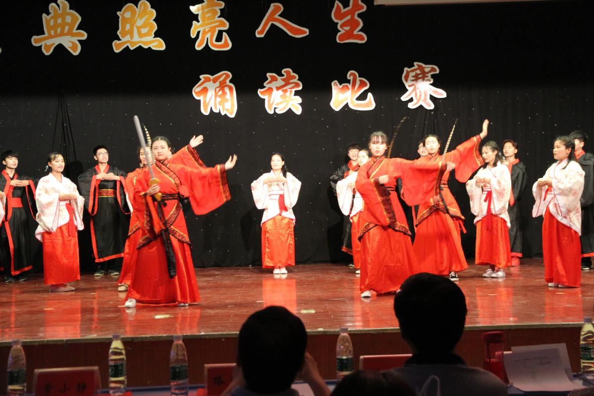 本次诵读比赛共收到校内各单位选送的29项精品节目,分为个人朗诵和集体朗诵两部分,参赛节目精彩纷呈,比赛现场气氛热烈。参赛学生以多种形式表现诵读内涵,朗诵、音乐、舞蹈、情景表演等多种形式有机融合,诵读声高亢嘹亮,响彻全场,现场气氛热烈,掌声雷动,感染了在场的每一位观众。