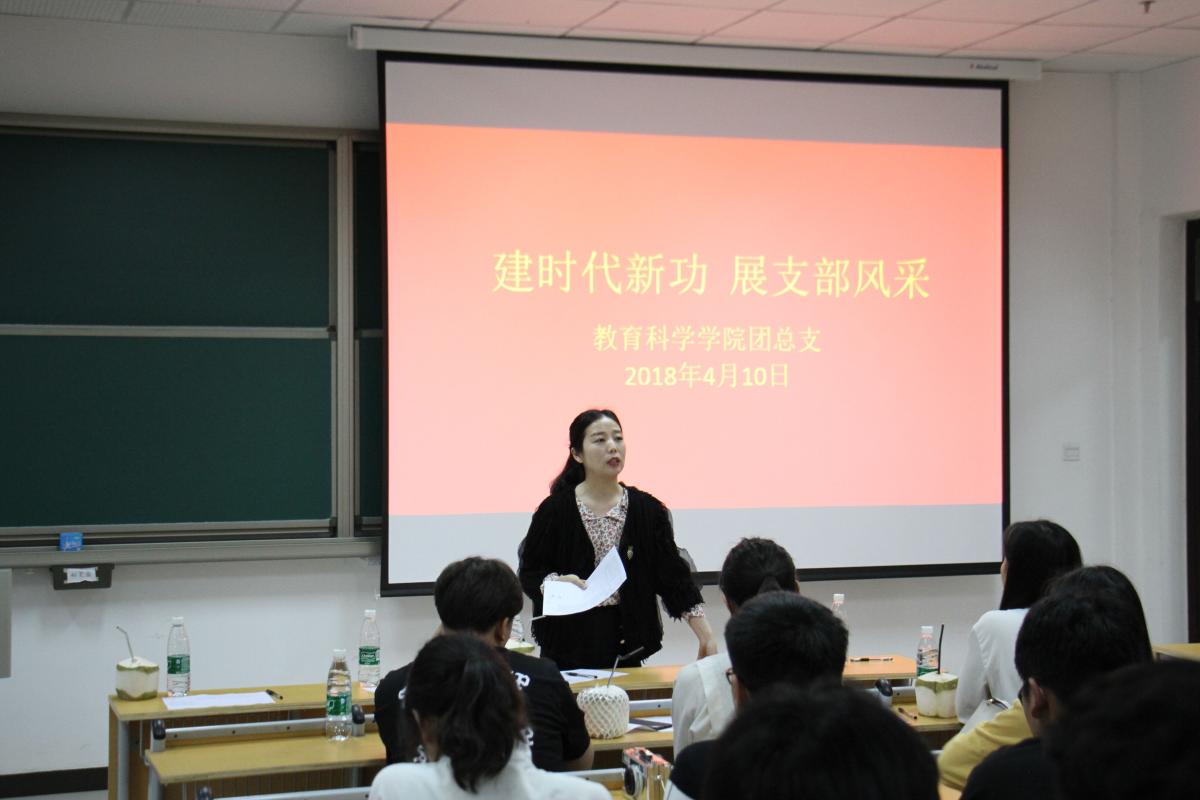 2018年4月10日下午4点半,教育科学学院在文科综合楼104教室举办了以“建时代新功,展支部风采”为主题的团支部风采大赛。比赛邀请了文学与传媒学院、电气(机电)工程学院、外国语学院及商学院的团总支书记担任我院团支部风采大赛评委,许昌学院团委副书记史若言到场参观指导。