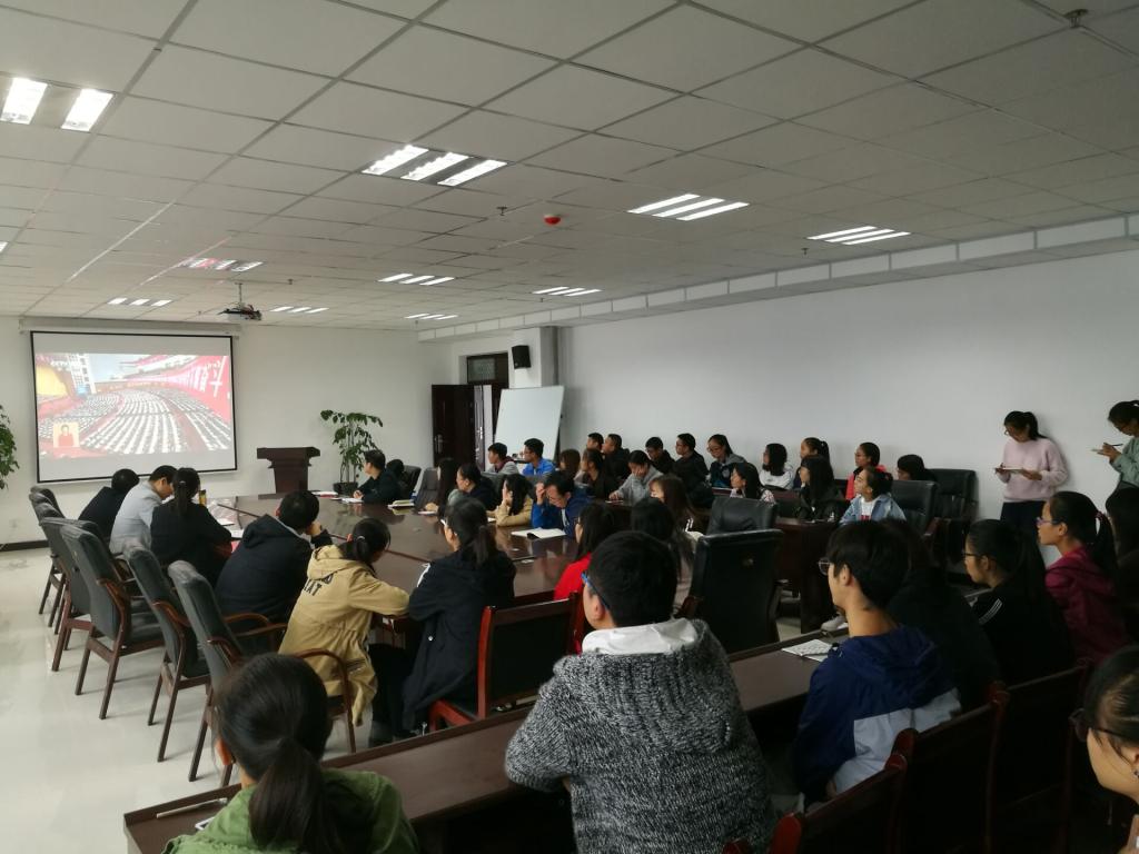 10月18日上午9时,全国人民翘首以盼的中国共产党第十九次全国代表大会隆重开幕。学院在大会议室进行了“喜迎十九大,观看十九大开幕式”的活动。此次活动得到了全院师生的极大关注,学院党总支书记常小静、副书记李晓鹏、副院长张笑涛,团总支负责人、辅导员、班主任和学生入党积极分子等50多人到场参与活动。