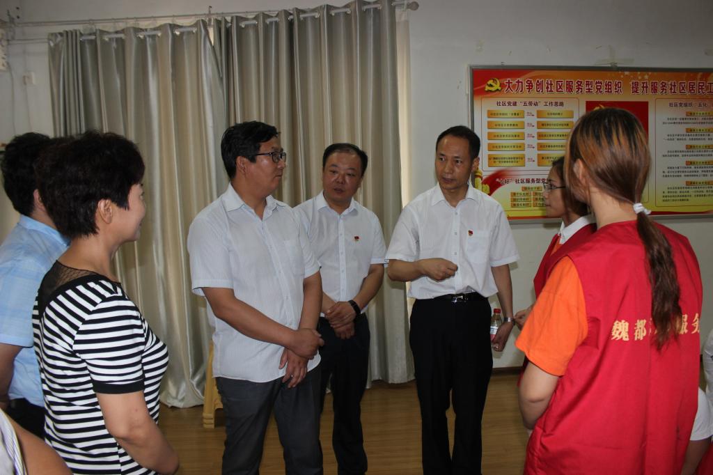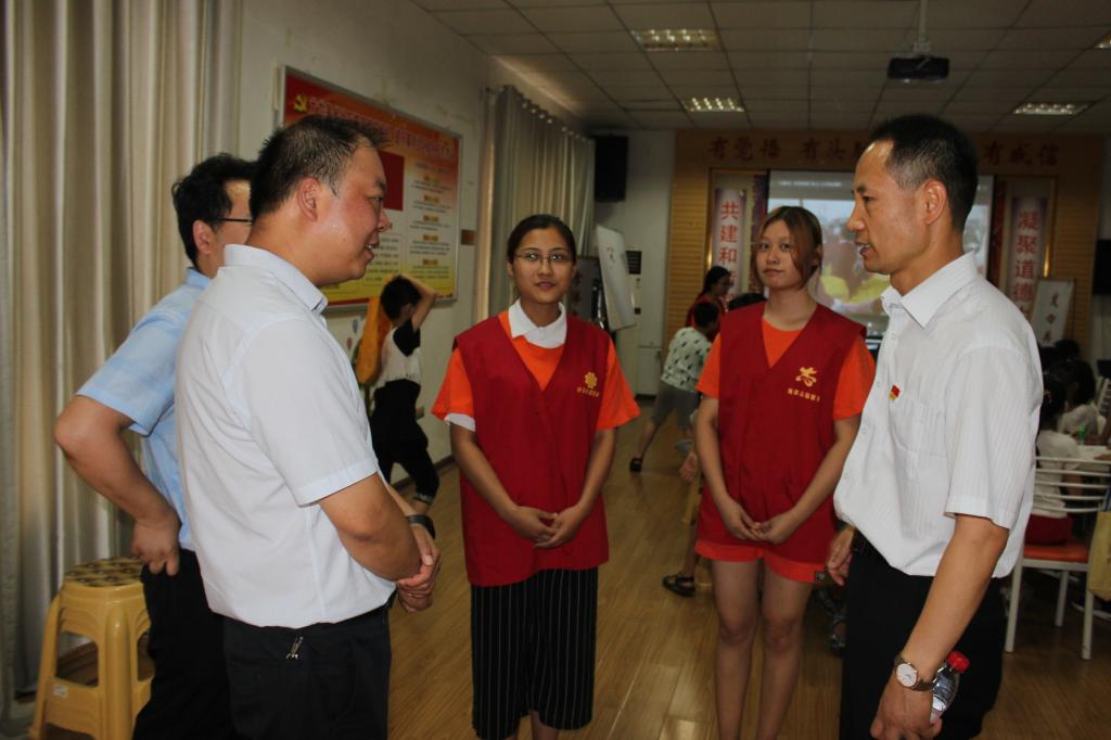 下午的课堂正在进行中,社区书记伴随省委领导来视察,在观看了学生们的学习场景后对社区的工作进行了指导,并同大同社区服务实践队的队员进行亲切友好的交谈,表扬了大学生们走出校园,回报社会的情怀。实践队员们受其鼓励,更加积极地投入到了志愿服务当中。