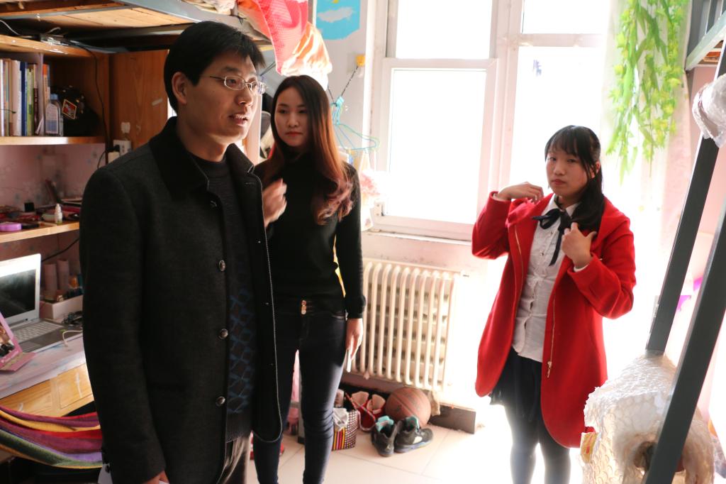 3月11日 ,开学之初。教育科学院党总支副书记李晓鹏亲临静二静三女生宿舍进行宿舍检查。学生会主席王鹏飞,团总支副书记丁嘉以及各部门负责人随从检查。
