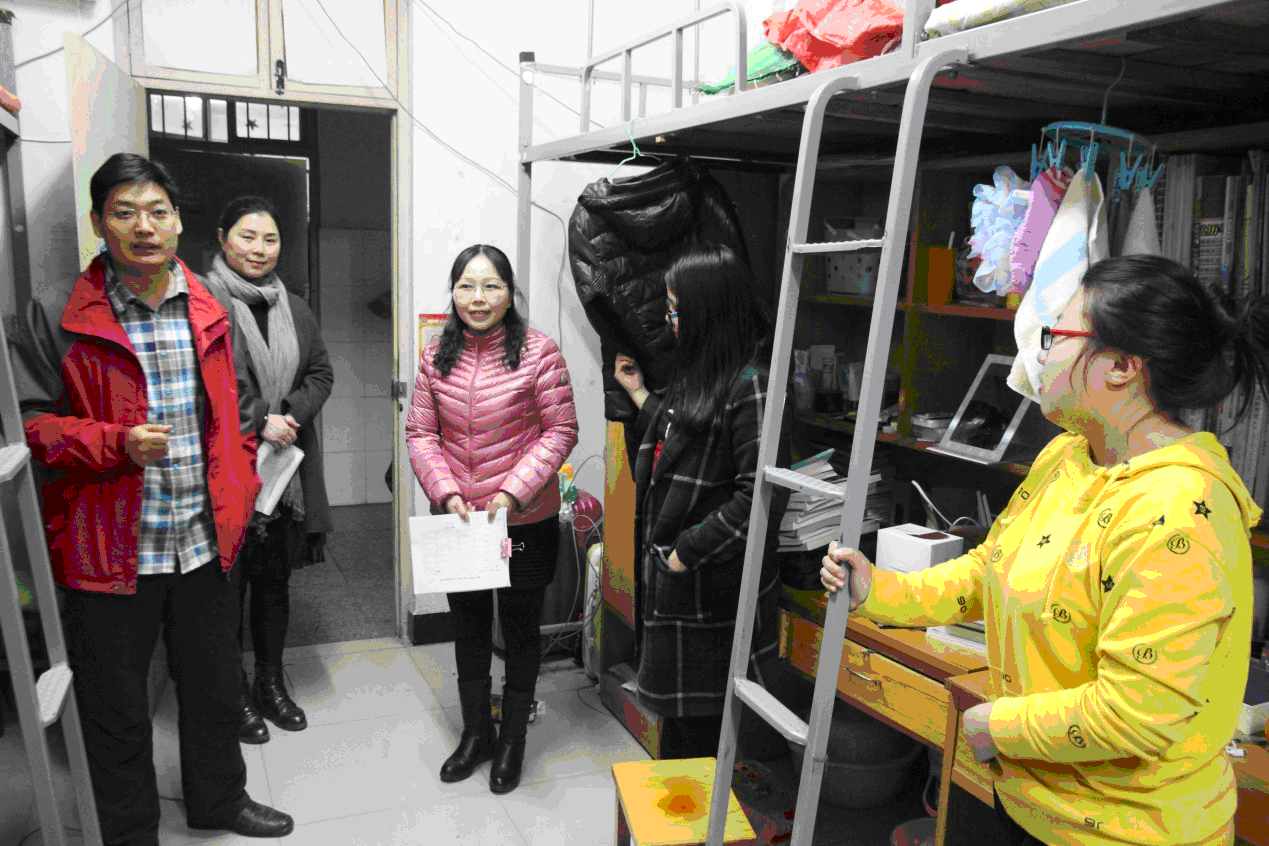 2月28日晚,新学期开学之初,教育科学学院党总支副书记李晓鹏、辅导员袁朝阳、张谦等在学生干部代表的陪同下深入宿舍看望新学期返校学生。