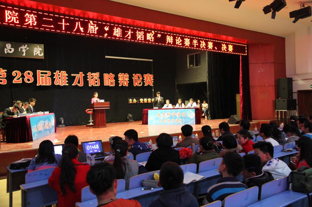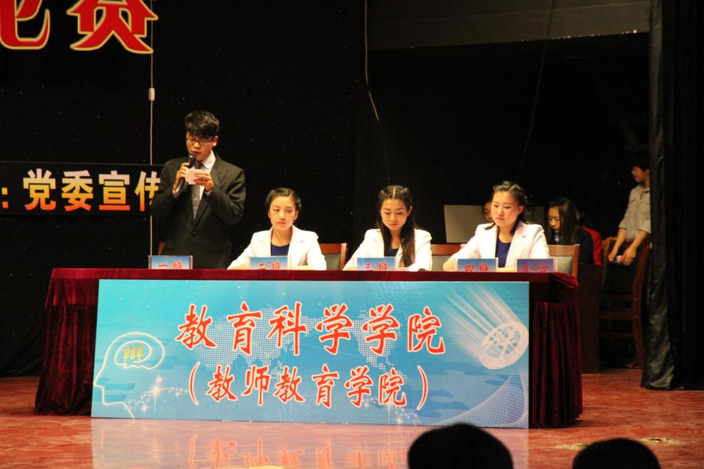 4月3日下午,由许昌学院党委宣传部主办的许昌学院第二十八届“雄才韬略”辩论赛半决赛、决赛在满庭芳新餐厅四楼大学生艺术活动中心内隆重举行。教育科学学院团总支副书记王蕾,学生会主席许蒙,副主席赵乐乐、王晓丽、张嘉玮、鞠瑶等带领教科院代表队出席本场辩论赛。本场比赛,教科院对阵法政学院。