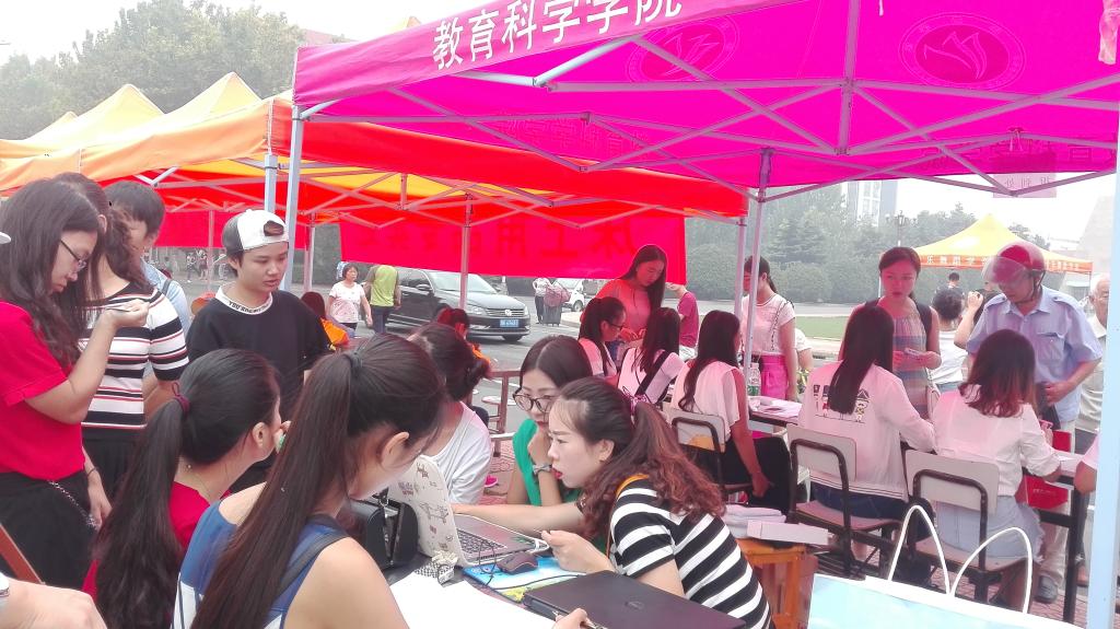 炎炎烈日,难敌新一届求学渴望;默默奉献,方显志愿者无私与真诚。为做好本次迎接新生的工作,教育科学学院老师们与团总支学生会、共同组织了迎新队伍,充分做好迎新工作。虽然天气炎热,但迎新工作仍开展的热热闹闹,到处都是忙碌的身影。不少教育科学学院的学生干部及志愿者们分为接待组、咨询组,后勤保障组,分别接待新生,他们有的在门口辛苦地举着院旗接应,有的在接待处耐心地接受家长和新同学的咨询,有的微笑着为学弟学妹办理手续,还有部分同学因场地有限一直默默地坐在台阶上等待着新同学办理完手续便带领他们去往宿舍区,志愿者们积极解决新生遇到的各种问题,使新生们感受到了来自院领导、老师、学长、学姐的亲切关怀。新生们热情地叫着“学长学姐”,老生们也开心地介绍这介绍那。学长学姐们的热情周到的服务很快消除了新生们初来乍到的陌生感,使得迎新现场人头攒动,秩序井然。