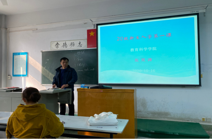 10月16日晚,我院副院长张笑涛在B合5教室对2020级我院全体新生进行了学院概况和教学管理介绍。张笑涛院长将我院的教育方向、教育目标、教学管理模式进行了介绍,使得同学们对教育学院的了解更为深刻,对接下来四年的学习生活有了更为明确的目标。