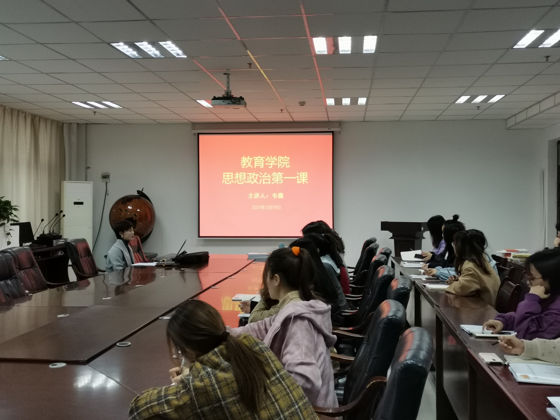 为更好发挥为党育人政治功能,2021年3月19日,我院在文综楼1621会议室开展思政第一课,我院党委书记韦薇主持并讲授本次思政课,我院青马工程培训班成员、入党积极分子以及党员代表参加本次思政课。