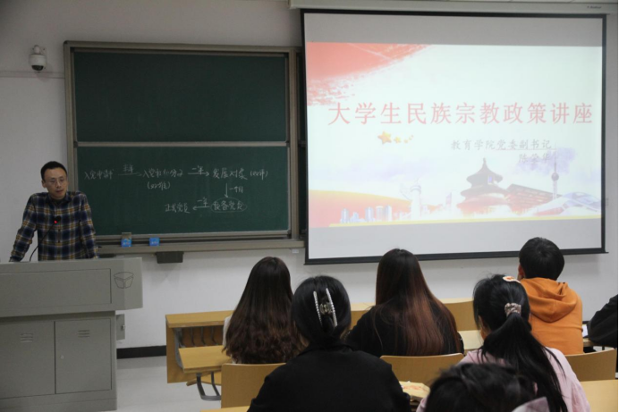 我院党委副书记陈荣华为入党积极分子开展了宗教知识讲座,带领大家学习了我国宗教的基本知识及中国共产党的宗教政策,帮助大家树立正确的宗教观。