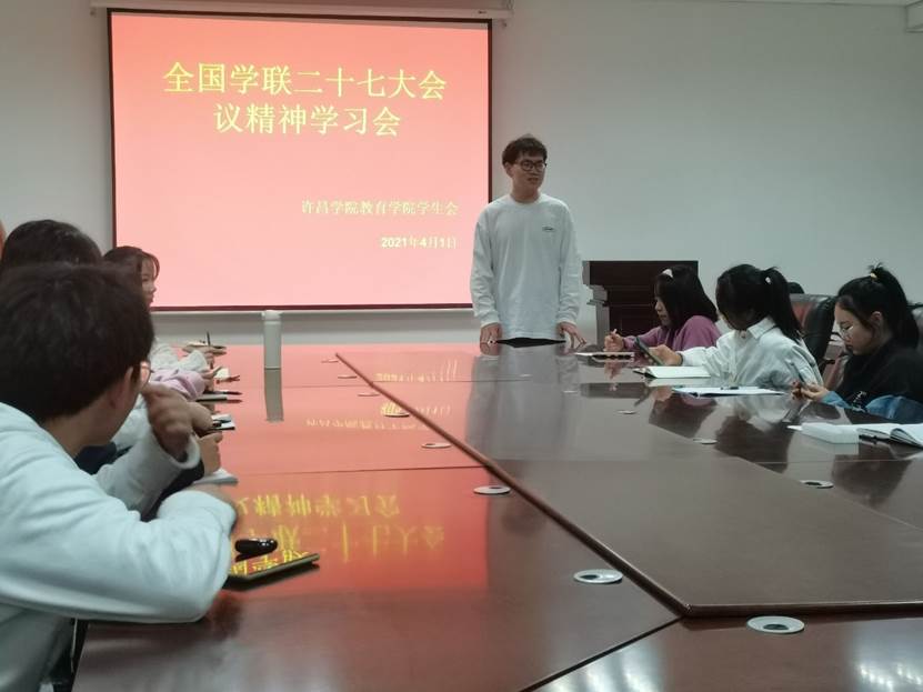 为深入学习贯彻落实全国学联二十七大会议精神,激发我院广大青年学生以拼搏的精神、奋进的姿态谱写青春之歌,我院于2021年4月1日开展全国学联二十七大会议精神学习会。