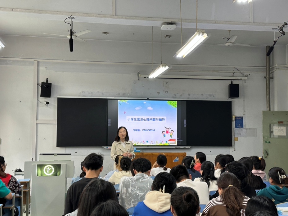 2023年10月17日下午,许昌市魏都区心理辅导中心主任宋明娟老师应邀在B-302教室为2020级应用心理学专业学生做了题为“小学生常见心理问题与辅导”的讲座。宋明娟老师是国家二级心理咨询师,家庭教育指导师,河南省学术技术带头人,河南省家庭教育讲师团讲师,河南省银奖公益志愿服务项目《许昌家长效能父母》主讲人和发起人之一。宋老师从事教育工作36年,班主任工作24年,家庭教育和心理健康辅导18年,开展家庭教育和心理健康讲座百场以上,具有丰富的心理辅导经验和的深厚的教学研究能力。在两个半小时的讲座中,宋老师从心理健康的标准、小学生常见心理问题的表现、小学生心理问题的成因、小学生心理问题的类型与辅导等方面,结合自己的实际经验进行了比较详细的阐述,本场讲座反响良好,受到了学生们的热烈欢迎。