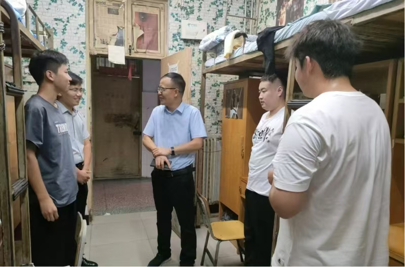 9月8日晚七时许,教育学院领导与辅导员一同走进学生宿舍,对刚刚入住的2024级新生进行了走访慰问。此次走访旨在深入了解新生的生活情况,帮助他们尽快适应大学生活,并解决他们在入学初期可能遇到的问题。首先来到新生宿舍,与同学们亲切交谈。每到一处,领导们都详细询问了新生们的食宿条件、生活环境以及对学校的初步印象,鼓励大家相互帮助,共同营造一个温馨和谐的宿舍环境。