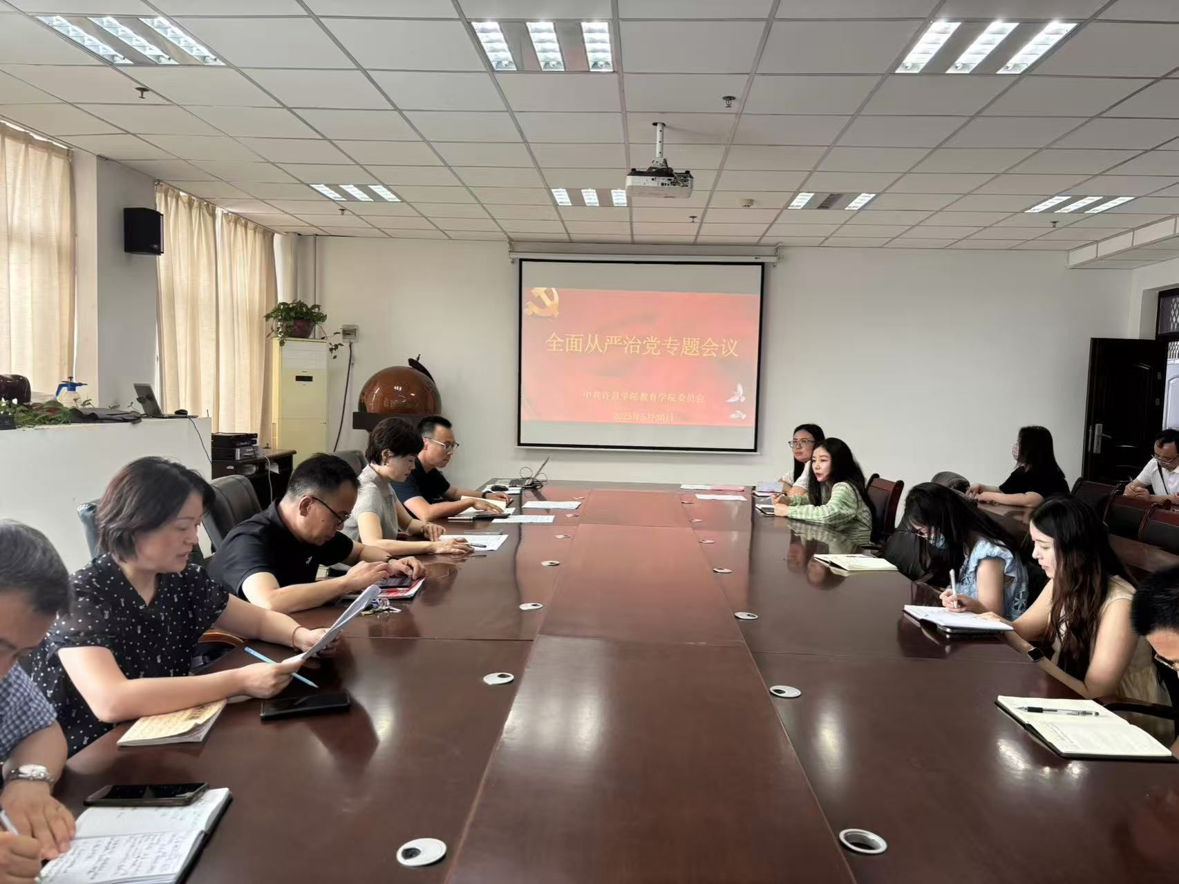 5月30日下午,教育学院组织召开2025年上半年全面从严治党工作专题会议,科级以上干部参加会议,会议由党委书记韦薇主持。