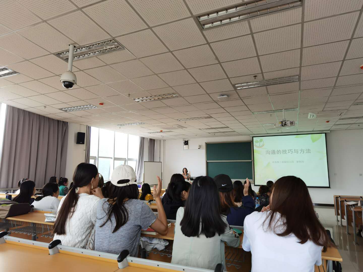 席园长围绕幼儿园实践工作,主要讲述了以下两点内容:第一,分析当下家园沟通存在的主要问题,分析家长的类型和心理特点。第二,有针对性地解读“与家长沟通的技巧”、“家园沟通的方法”,即如何与家长说话、如何处理好与家长之间的关系、如何转变家长教育理念、如何引导家长进行科学的家庭教育,理解家园沟通的意义。席园长将理论与案例完美融合,并辅以风趣幽默的讲解方式,让每一位实习学生重视沟通前的准备,沟通时的态度、方法与内容,并明确沟通的重要性---沟通是谈判,是达成共识、解决问题的关键。与此同时也让实习学生学会如何赢得话语权,如何让家长信服、尊重并愿意与教师沟通,让沟通顺利进行,圆满成功。