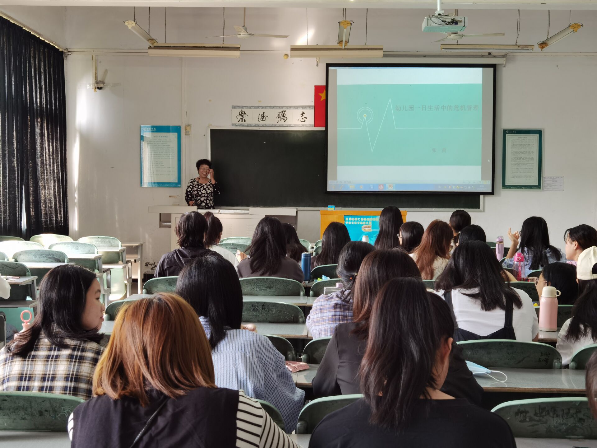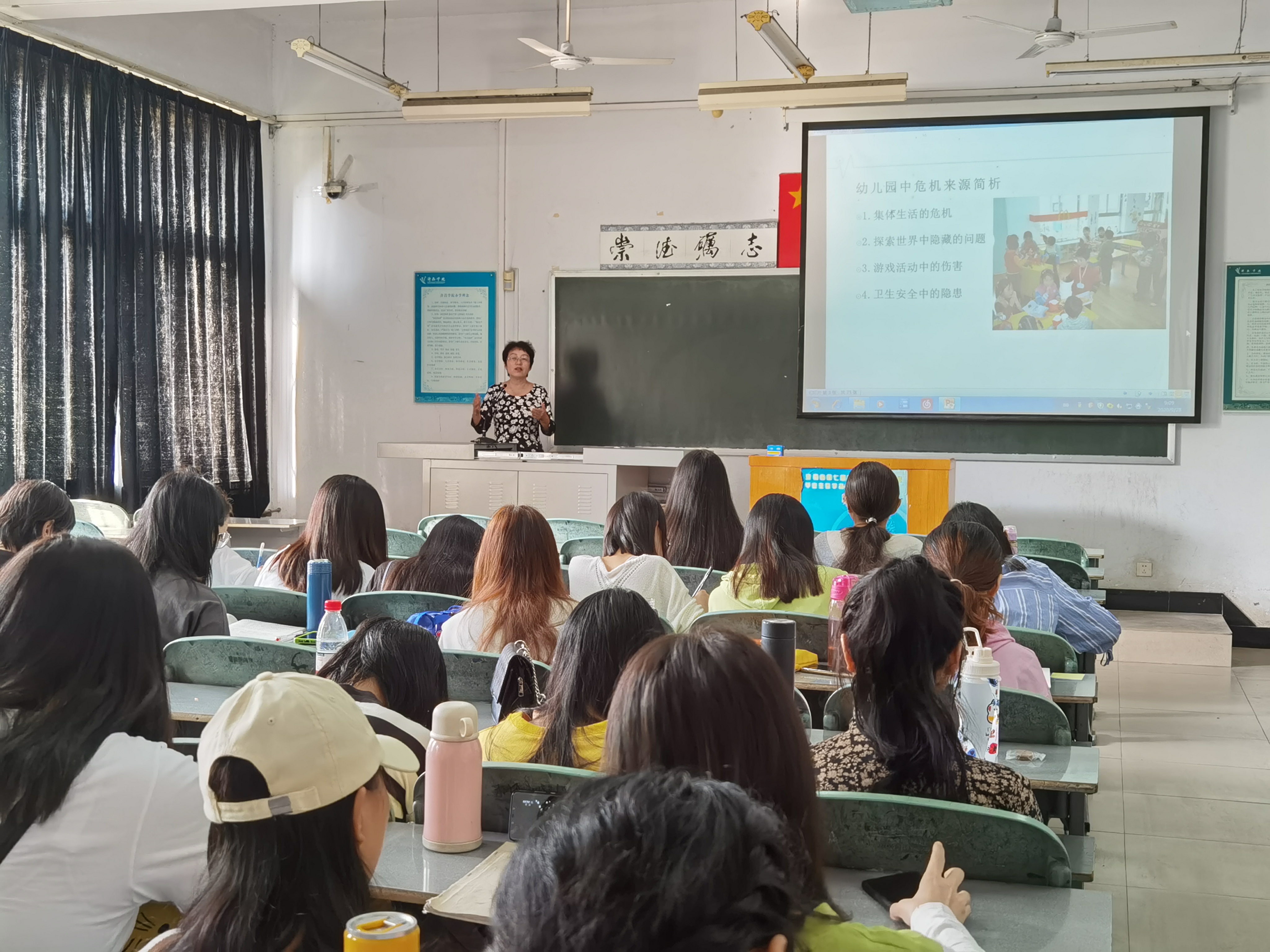 安全在幼儿园工作中至关重要。为进一步提高17级学前教育专业学生在实习工作中的安全意识,加强对幼儿安全事故的认识、防范及应对措施, 9月28日上午9点,教育学院特邀在许昌市政府机关幼儿园工作多年的张简园长,对2017级学前教育专业学生开展了幼儿园安全事故预防及应对的专题培训。