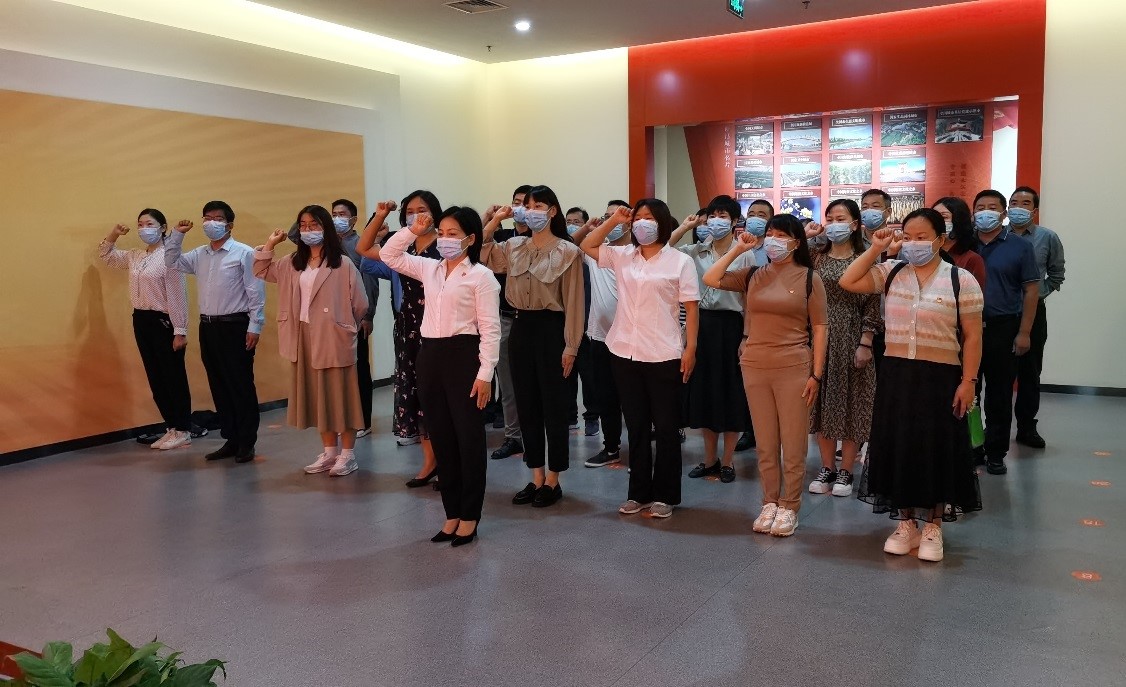 在中国革命近百年奋斗中,我们党始终不忘初心、牢记使命,带领广大人民群众为国家富强和人民幸福而奋斗。今天,学员们站在新的时代起点上走进红色教育基地接受“红色教育”,就是要牢固树立“以人民为中心”的发展思想,汲取党性营养“润心铸魂”,补足理想信念之“钙”。面对党旗,学员们重温入党誓词,让自己的心灵再次接受红色的洗礼!