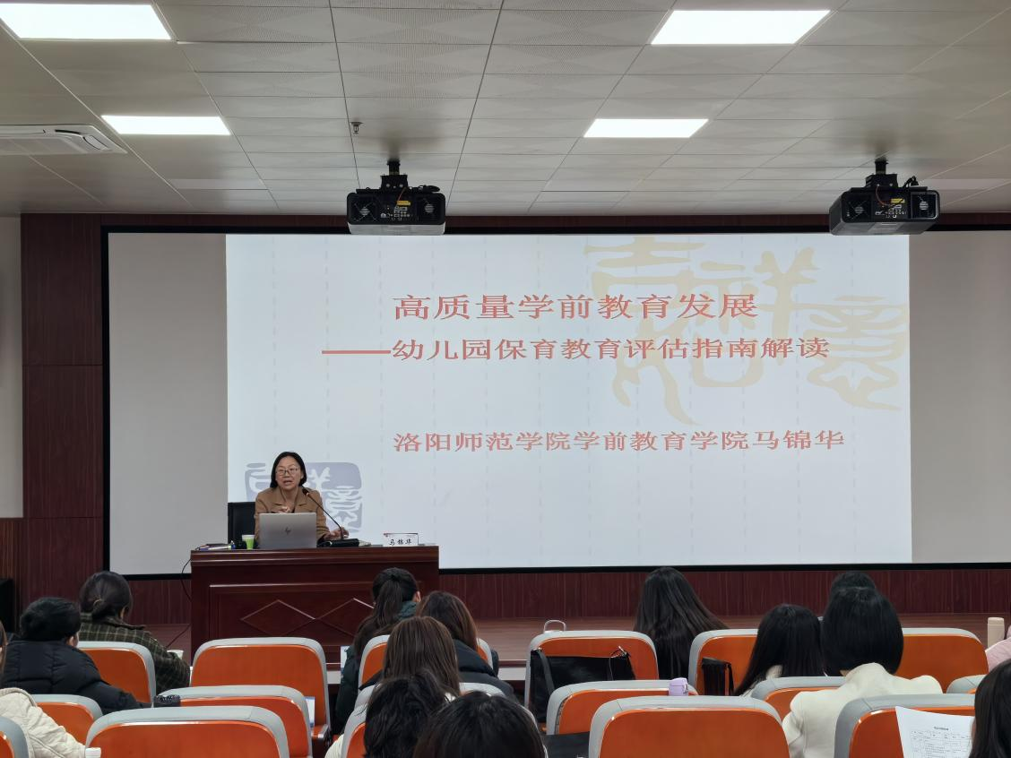 2023年11月24日下午,教育学院承办的“国培计划(2023)”邀请洛阳师范学院学前教育学院院长,河南省教育学类专业教学指导委员会副主任委员马锦华教授作报告。2023年县级幼儿园骨干教师项目国培学员、教育学院部分教师代表参加。讲座由教育学院副院长刘培蕾主持。