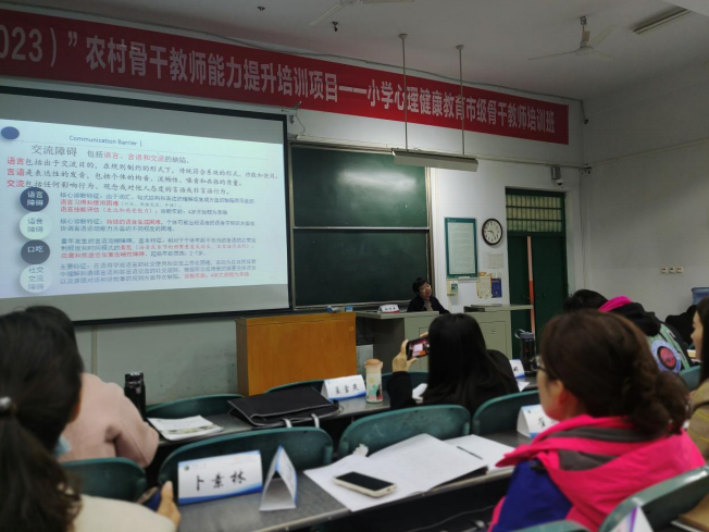 2023 年 11 月 11 日上午,许昌市建安医院副主任医师——杜贵平为国培学员做了一场题《儿童常见精神疾病的预防与诊治》的专题 讲座,国培项目班主任陈向丽老师主持。
