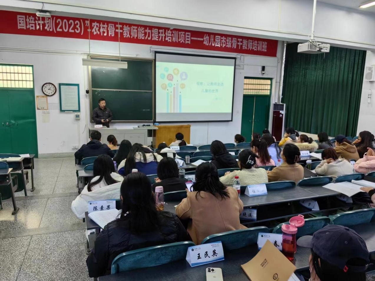 11月13日下午,厚一儿童发展研究中心主任、国培项目特聘讲师、课程游戏化改革实践专家、常州市名教师工作室成员、乐恩教育集团等十多家幼儿园总顾问沈道广,应教育学院邀请莅临我校为国培学员带来一场题为《观察:让教师走进儿童的世界》专题讲座。