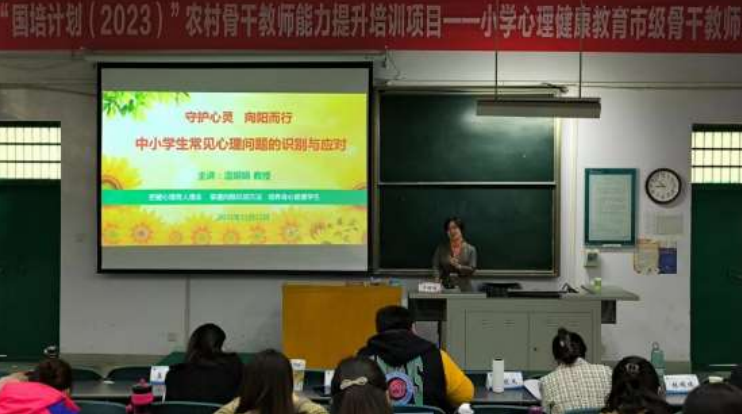 2023年11月 12日上午,河南职业技术学院心理健康教育中心负责人——温娟娟教授为国培学员做了一场题为《中小学生常见心理问题的识别与应对》的专题讲座,国培项目班主任冯建成老师主持。