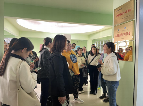 11 月 7 日下午, 农村骨干教师能力提升项目-市级骨干教师(小 学心理健康教育)学员实地参观我校大学生心理健康教育与咨询中心和教育学院心理测评与干预实验室,观摩考察心理咨询的机构设置。