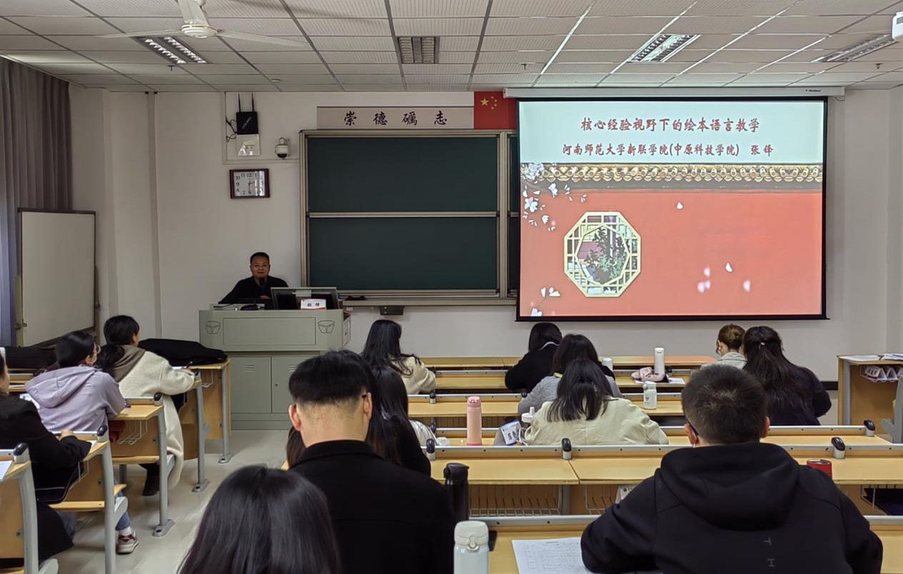 3月20日下午,中原科技学院副教授、河南师范大学图画书研究中心副主任、中国人社部专业认证“阅读指导师”课程主讲专家张锋老师应教育学院邀请,莅临我校为参训教师做了一场题为“核心经验视野下的绘本语言教学”的专题讲座。本场讲座由教育学院李帆老师主持。