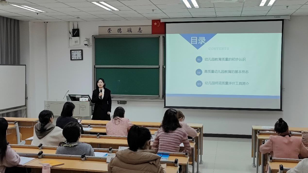 3月26日上午,我校邀请郑州高新区金葵子语幼儿园园长王焕为薄改项目——学前教育培训班学员作“幼儿园教育质量评价与园所文化的共生”的专题讲座。