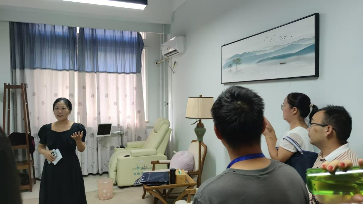 9月9日上午,初中心理健康县级骨干教师培训班参培学员在班主任陈向丽老师的带领下实地参观我校大学生心理健康教育与咨询中心。此次活动,我们荣幸邀请到咨询中心的专职心理咨询师丁玉连老师担任接待工作,为学员们提供专业而细致的引导与介绍。