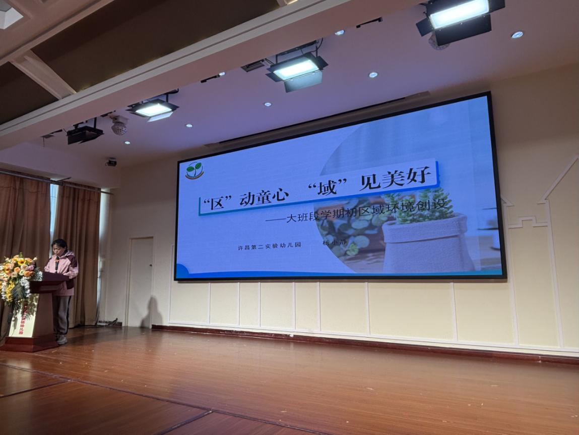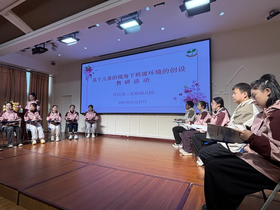 下午,学员们聆听了许昌市第二实验幼儿园教师微分享,观摩了幼儿园教师微教研展示。首先,杨小静老师分享了《“区”动童心“域”见美好》,井梦老师分享了《“沿”途相遇“角”对精彩》。接着观摩了教研活动,教研的主题是基于儿童的视角下班级环境的创设教研活动。