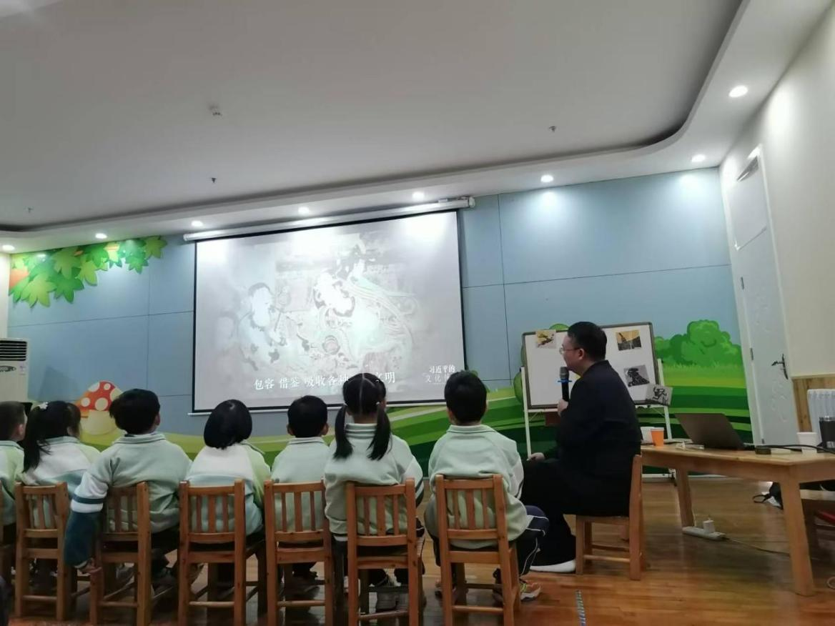 活动伊始,张锋教授以引导小朋友分享自身爱好特长为切入点,巧妙引入《纪昌学剑》的故事。在聆听绘本故事的进程中,小朋友们紧跟张教授的节奏进入各个活动环节,仿佛置身其中,真切体会到纪昌在学剑过程里所展现出的坚持与勇气。临近尾声时,通过向纪昌赠送一朵花的互动环节,让纪昌坚持不懈、保家卫国的精神深深烙印在小朋友们的心田并逐渐萌芽生长。