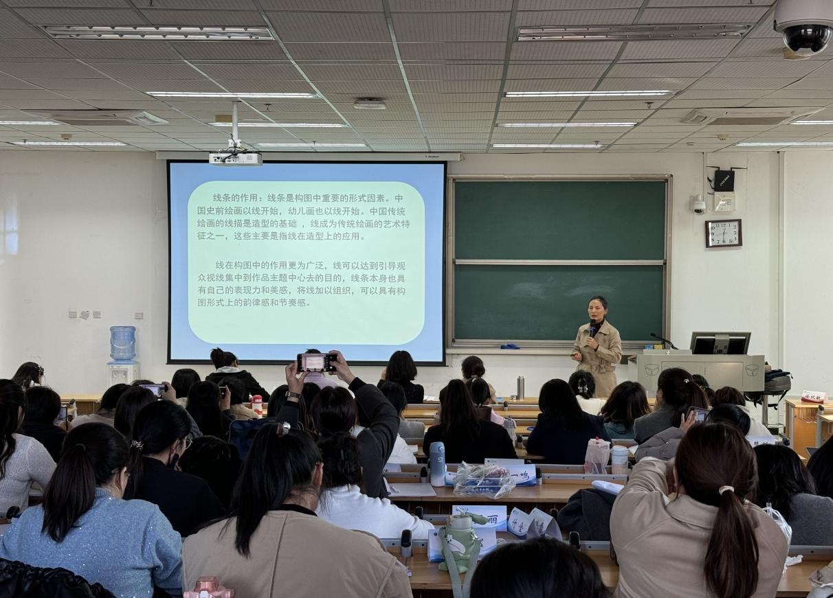 张毅园长以其深厚的专业功底和丰富的实践经验,为学员们详细阐述了线条在构图中的重要性。她指出,线条不仅是构成画面的基础元素,更是引导观众视线、增强作品表现力和美感的关键。通过生动的实例和详细的讲解,张园长让学员们深刻理解了线条在美术教育中的多重作用。