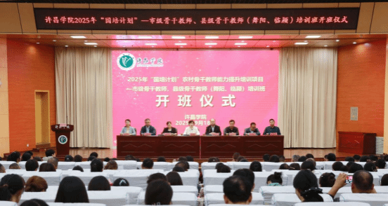 9月18日上午,开班典礼在许昌学院图书馆学术报告厅隆重举行。副校长赵艳敏出席开班仪式并讲话。舞阳、临颍县教育局,我校继续教育学院、各承训学院相关负责人以及参训学员等近350人参加仪式。开班仪式由继续教育学院院长高均昭主持。