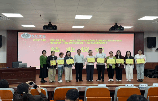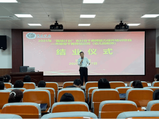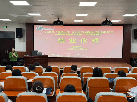 9月27日上午,由许昌学院“国培计划(2025)”农村骨干教师能力提升项目市级骨干教师培训—幼儿园教师培训班结业典礼,在许昌学院多功能教室举行。教育学院教育学教研室主任徐来群教授、本期培训班的班主任及全体参训学员参加。结业典礼由班主任李帆老师主持。