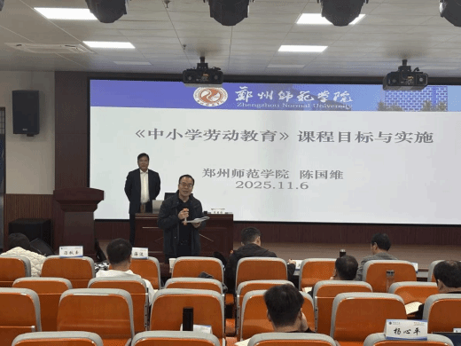 11月6日下午,我校邀请郑州师范学院教育学二级教授陈国维博士为“国培计划(2025)”初中综合实践培训班学员作题为“中小学劳动教育课程目标与实施”的专题报告,报告由许昌学院教育学院院长张笑涛主持。