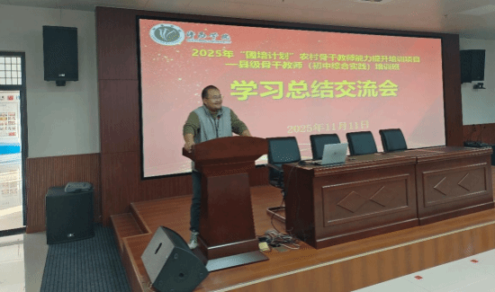 2025年11月11日下午,初中综合实践县级骨干教师培训班学习总结交流会在温馨愉悦的氛围中顺利举行。本次活动由班委精心筹备,旨在为参训骨干教师搭建轻松开放的交流平台,促进彼此深入了解,凝聚团队力量,共话专业成长。班主任曹思敏主持了本次交流会。