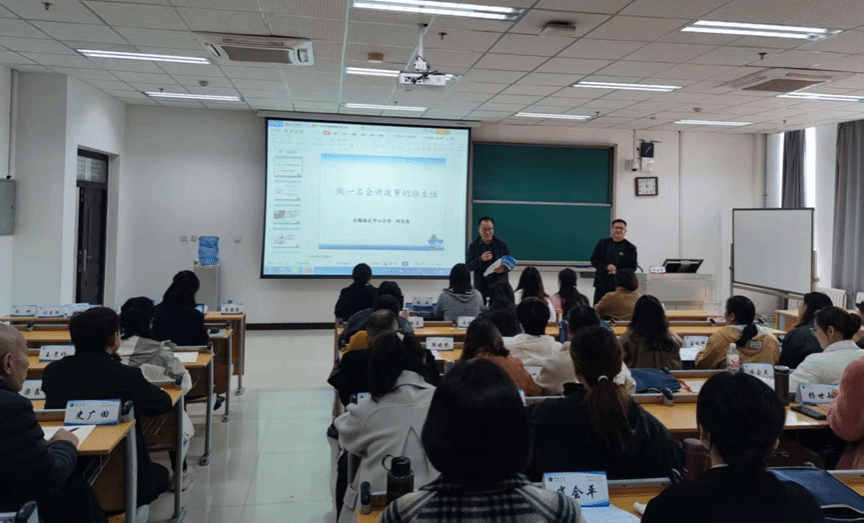 2025年11月3日下午,无锡市扬名中心小学刘忠伟校长应教育学院邀请,在E-209教室为小学心理健康国培学员作题为《做一名会讲故事的好老师》的专题报告。本次活动由教育学院院长张笑涛主持,现场气氛热烈,学员深受启发。