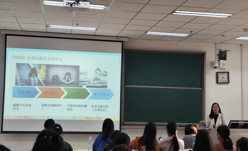 讲座开篇,王老师引用世界卫生组织及国内权威数据,指出当前中小学生心理健康问题呈现低龄化趋势。随后结合胡鑫宇事件等典型案例,系统阐释心理危机的定义与类型,并深入剖析了学业压力、家庭环境等主要诱因,为后续内容做好背景铺垫。