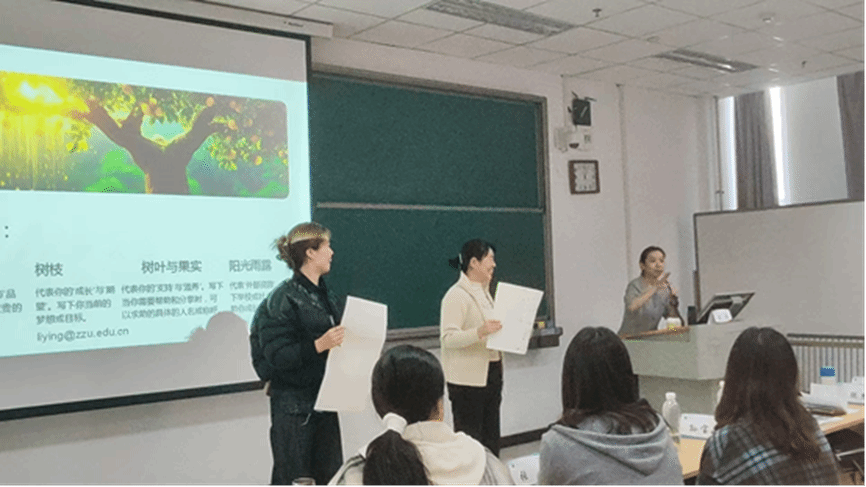 在实践教学环节,李莹教授组织参训教师开展了“种出生命之树”团体辅导活动。该活动通过绘制个人生命树,引导教师反思自身的成长根基、内在品质、社会支持系统与外部资源,进而理解如何在学校中系统性开展生命教育,帮助学生建立积极自我认知与生命意义感。