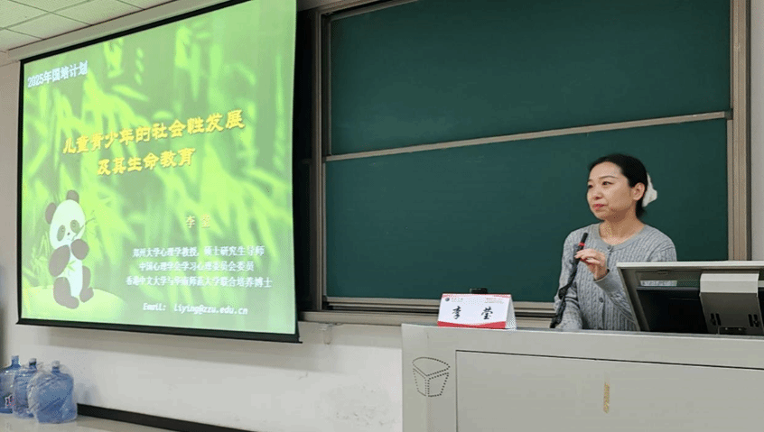 2025年11月5日上午,郑州大学心理学院硕士生导师李莹教授应教育学院邀请,为小学心理健康国培学员作《儿童青少年认知与社会性发展及其生命教育》专题讲座。本次活动由教育学院周海谦老师主持,现场学习氛围浓厚,学员参与积极。