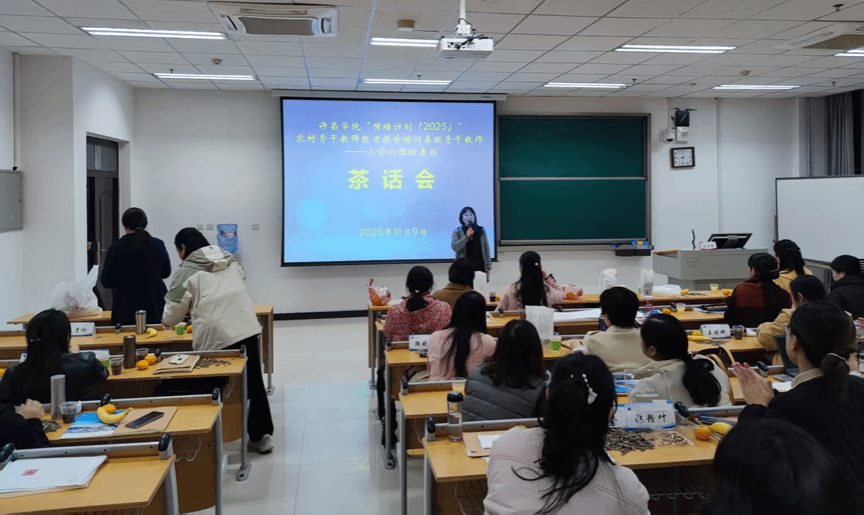 2025年11月8日晚,小学心理健康县级骨干教师培训班主题茶话会在温馨愉悦的氛围中顺利举行。本次活动由教育学院精心筹备,旨在为参训骨干教师搭建轻松开放的交流平台,促进彼此深入了解,凝聚团队力量,共话专业成长。