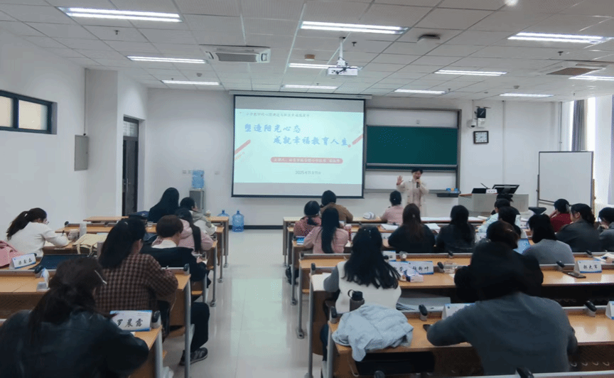 2025年11月11日下午,许昌市瑞昌路小学校长寇淑华应邀为“国培计划”小学心理健康教育专项培训学员作题为《塑造阳光心态,成就幸福教育人生——小学教师的心理调适与职业幸福感提升》的专题讲座。本次讲座由许昌学院教育学院院长张笑涛主持。