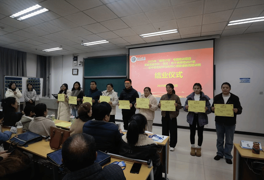 仪式最后,出席领导为优秀学员颁发证书,现场掌声阵阵。至此,本次“国培计划(2025)”初中寄宿制学校教师心理健康教育培训落下帷幕,参训学员带着满满的收获与成长,为即将到来的返程做好了准备。(图文:赵学琴;审核:韦薇、张笑涛)