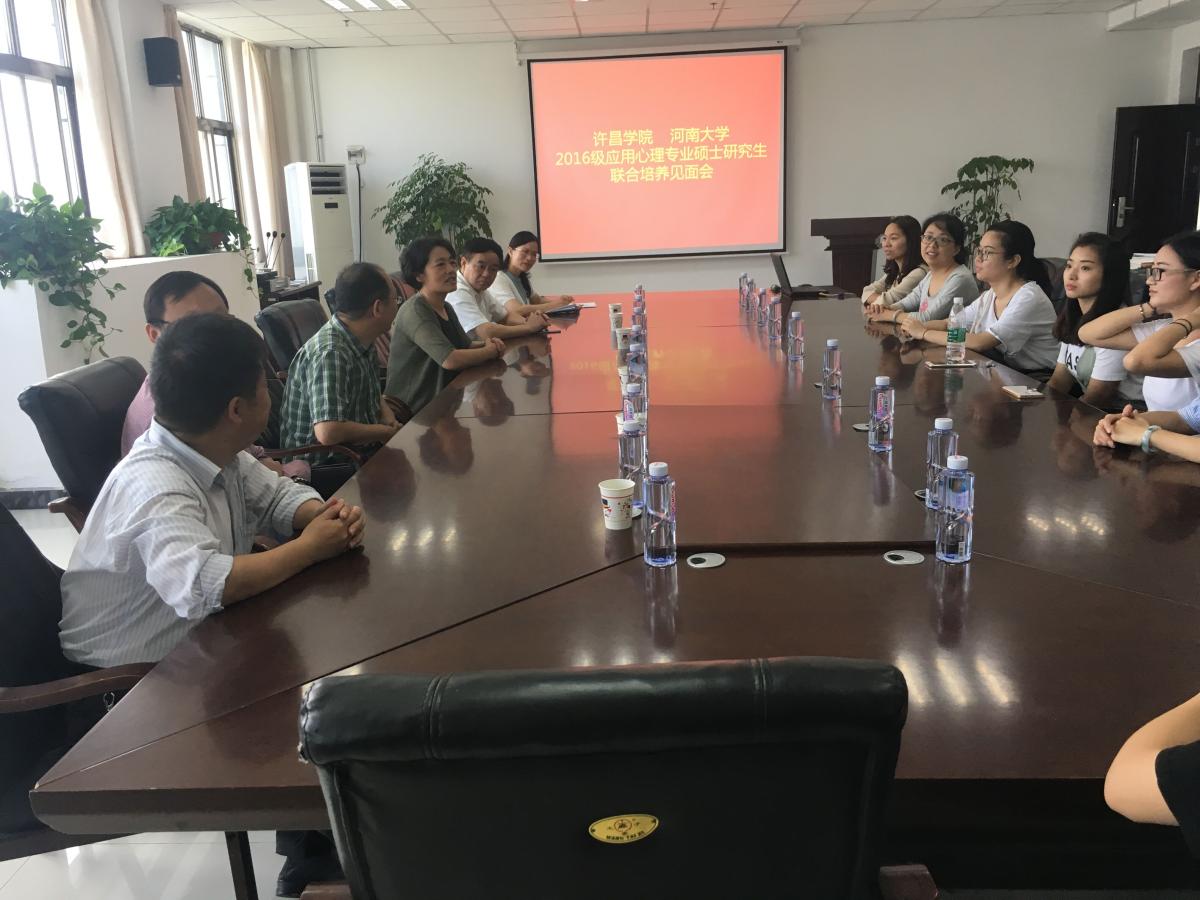 2017年9月14日,我院与河南大学联合培养研究生见面会在1621会议室召开。教育科学学院院长李晓慧、招生就业处处长张永祥、实验室与设备管理处处长蔡子亮等研究生导师与来自河南大学的心理学系党支部数据张锋,心理学系副主任张恩涛以及8名联合培养的2016级应用心理学专业研究生共同参加了本次会议。会议由李松副院长主持。