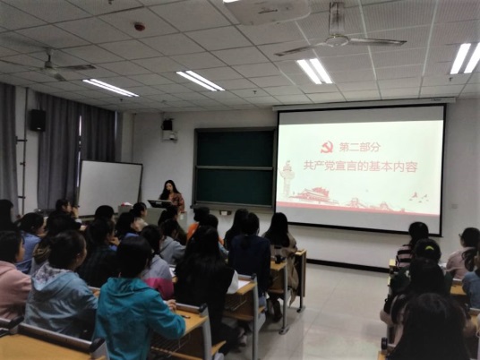 在讲座中,教育科学学院团总支书记李征首先围绕“党的指导思想,党建必须实现的四项基本要求,党的性质、目标、路线,党员的义务和权力”四个模块向入党积极分子们讲解了党的基本知识。随后,李征老师从《共产党宣言》的重要地位、在中国的传播以及结构内容方面对入党积极分子们进一步讲解。她指出《共产党宣言》是无产阶级政党的第一个科学的纲领性文件,是国际共产主义运动和世界社会主义事业蓬勃发展的理论源泉。同时她对入党积极分子们提出两点要求:一是加强对基层党支部相关知识和《共产党宣言》的学习,结合“不忘初心、牢记使命” 主题教育,深化对习近平新时代中国特色社会主义思想的学习理解;二是要深刻领会分党课的学习内容,明确党的指导思想、党的性质和宗旨、党的纲领和路线、党的作风和纪律。