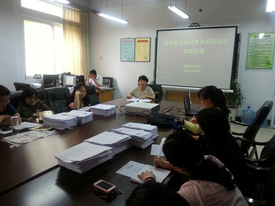 5月9日下午,教育科学学院举行党的群众路线教育实践活动专题党课。党课由院长李晓慧主讲,全院教职工参加了此次学习活动。