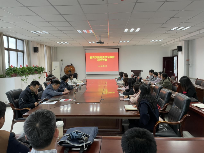 3月26日下午,教育学院在文综楼1621会议室召开党史学习教育动员大会,深入学习贯彻习近平总书记在党史学习教育动员大会上的重要讲话精神,对教育学院党史学习教育进行全面动员和部署。学院全体党员教师、部分学生党员代表参加会议,会议由教育学院党委书记韦薇主持。