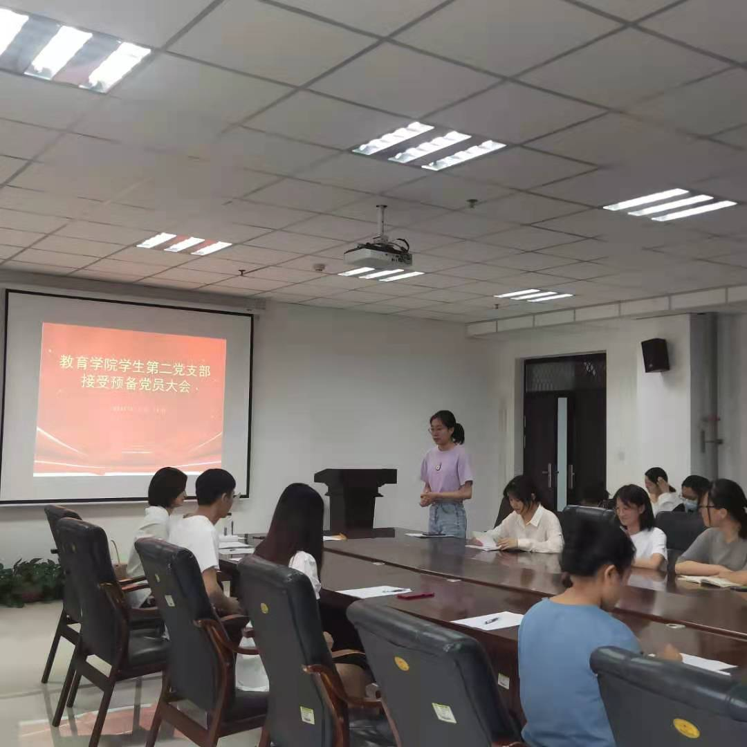2021年5月26日晚上,我院学生第二党支部在文综楼1621会议室召开预备党员接收大会暨“回顾党史 百年历程”主题党日活动,会议在学生第二党支部书记赵文慧的主持下召开。我院学生第二党支部全体党员、发展对象参加此次大会。