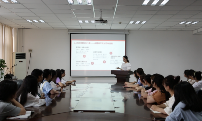 6月24日下午,为迎接中国共产党成立100周年,深入落实推进党史学习教育,教育学院第一党支部李征书记在文综楼1621为本支部的积极分子,发展对象及预备党员讲授党课。
